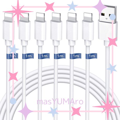 【ライトニングケーブル&6本セット】弊社のケーブルは 1M*6本セット,自宅、オフィスや車内等の場所でご自由に使えることができます。いつでも適切な長さで快適に充電できるので、充電の悩みは解決し、生活効率アップ!