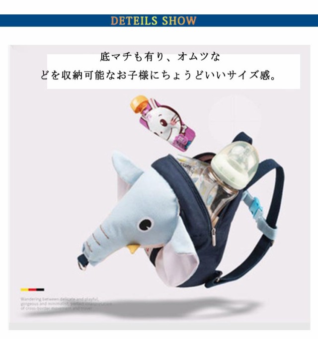 | いつものお散歩がもっと楽しくなる!ゾウ型のリュックでお子様も大喜び♪ ゾウさんの顔は立体的で、ちょこんとついた耳と鼻もキュート!装着するだけで後ろ姿が更に可愛く! ハーネスは取り外し可能なので、普段はかわいいリュックとしても使えます。 底マチも有り、オムツなどを収納可能なお子様にちょうどいいサイズ感。 公園、お散歩、お買い物など、お子様とのお出かけシーンで大活躍です。 | |