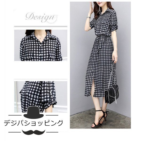 ギンガムチェック 40代 レディース ワンピース 夏 マキシ丈ワンピース きれいめ 大きいサイズ 通勤 リボン