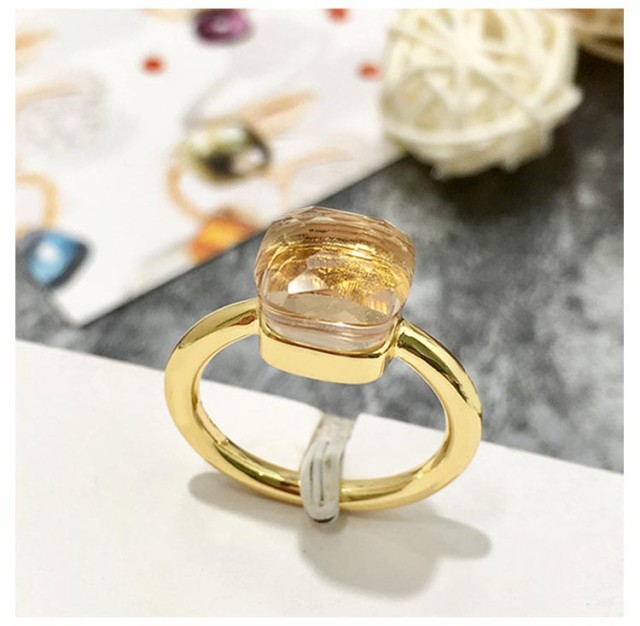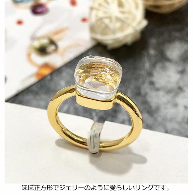 リング 真鍮 人工水晶 18k コーティング クオーツリング 指輪 クオーツ リング ヌードリング スクエア リング 人工水晶 シトリン アメジスト クリスタル ペリドット グリーンクオーツ ブルートパーズ リング お守り ジュエリー おしゃれ ギフト 送料無料