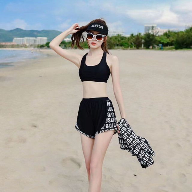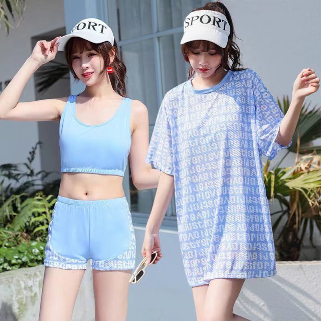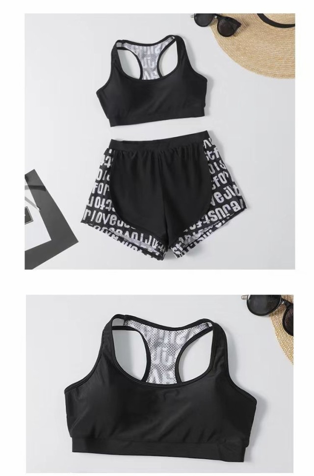 送料無料 水着 中学生 水着セット フィットネス水着 体型カバー スポーティー 露出控え 3点セット セパレート タンキニ タンク ショートパンツ 学生 高校生 少女 女の子 小胸にも