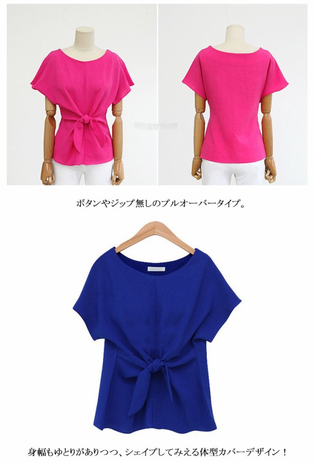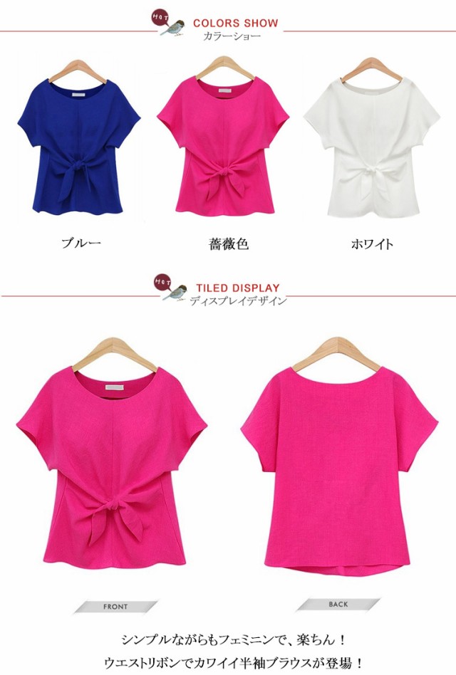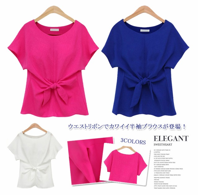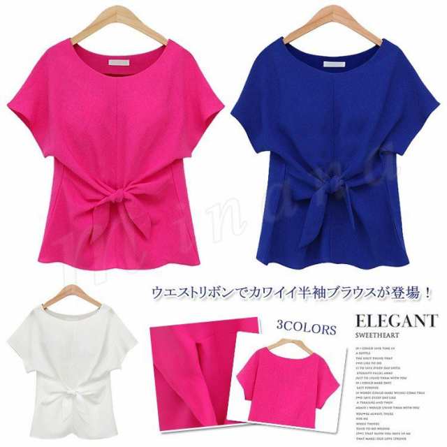 サラッと快適素材!ウエストリボン半袖ブラウス ブラウス レディース トップス プルオーバー リボン リボン シフォン 薄手 半袖 無地 大きサイズ 春夏 M L 2LL 3LL 4LL 5LL 6LL