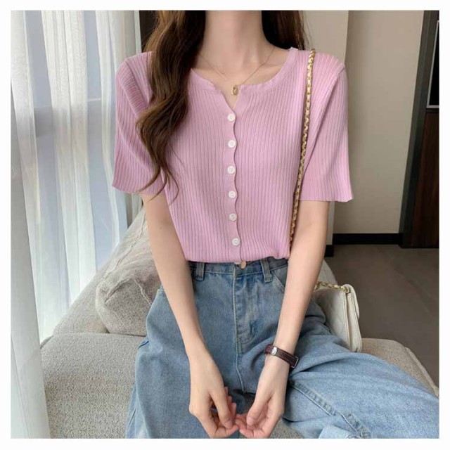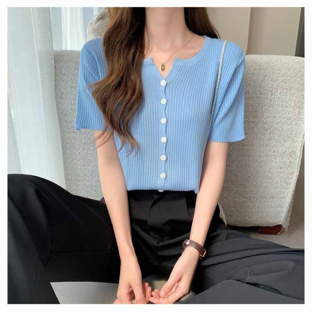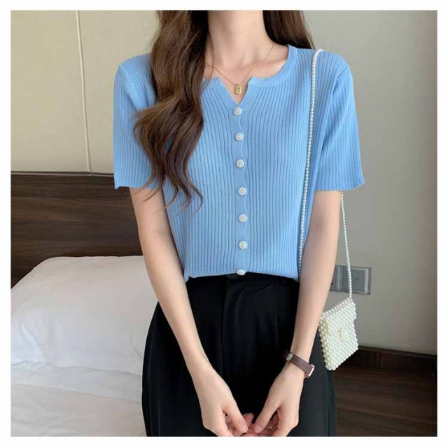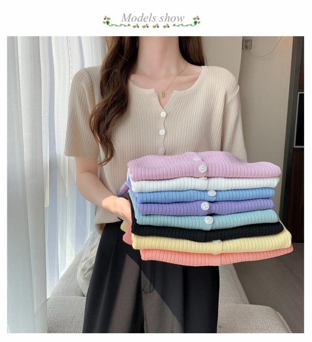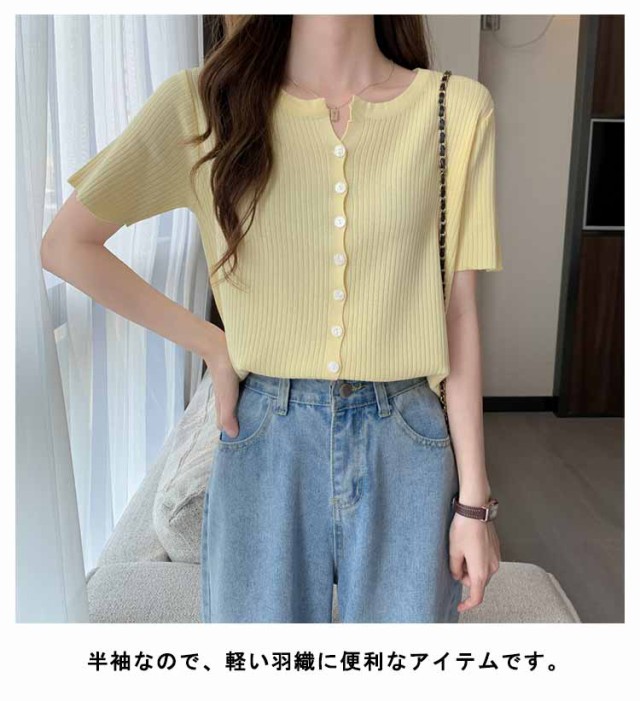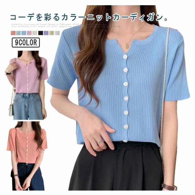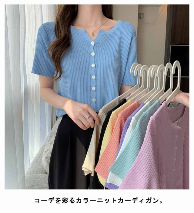 選べる2枚 サマーニットカーディガン 半袖 ニットカーディガン リブニット Vネック 薄い 夏 カーディガン 細身 ショート丈 カラーカーディガン 羽織り 接触冷感 通勤 春夏 夏 夏服 カジュアル 涼しいニット 無地