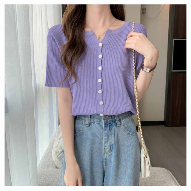 | コーデを彩るカラーニットカーディガン。 細めのリブが華奢な女性らしさを演出。 チクチクしないさらりとしたタッチでよい着心地◎ 半袖なので、軽い羽織に便利なアイテムです。 | |