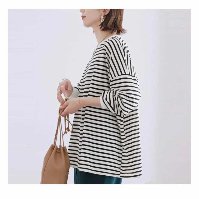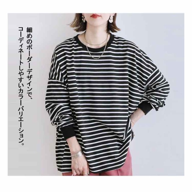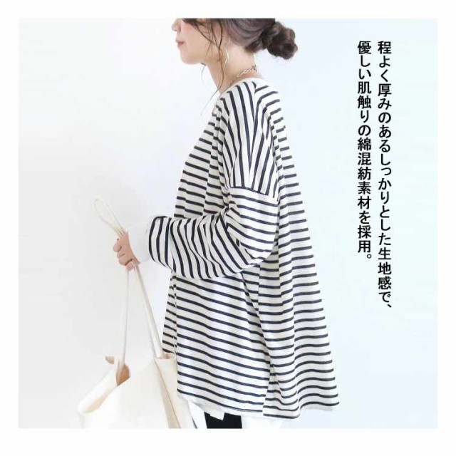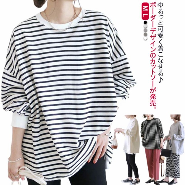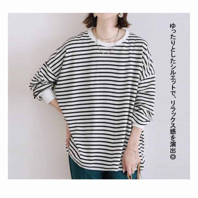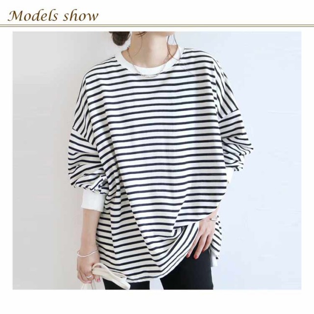 送料無料 ボーダー柄 Tシャツ カットソー レディース 長袖Tシャツ ボーダートップス チュニック ロンt オーバーサイズ 無地 ドルマン インナー クルーネック シンプルカットソーチュニック コットン ゆったり 大きいサイズ 大人 カジュアル 可愛い