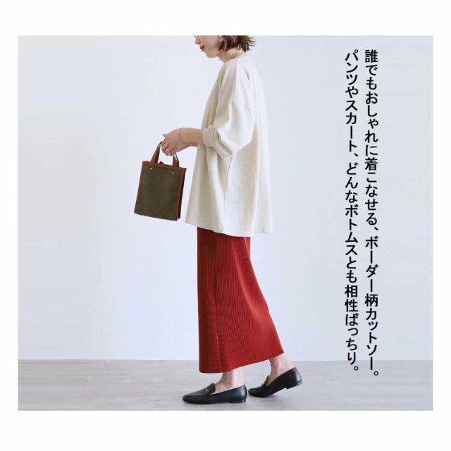 | 程良くゆったりしたシルエットとヒップラインの隠れる丈感のボーダー柄Tシャツ。 ヒップまで隠れるチュニック丈と、ゆったりとしたシルエットで、体型カバーも叶います。 首元が詰まりすぎないクルーネック仕様、女性らしく優しげな印象に。 デニムやスラックス、スカートなど、幅広いアイテムと好相性。 春先はタンクトップやカットソーなどを合わせて、様々なレイヤードスタイルが楽しめます。 コットンブレンドのナチュラルな風合いで、大人カジュアルなスタイリングをランクアップします。 | |