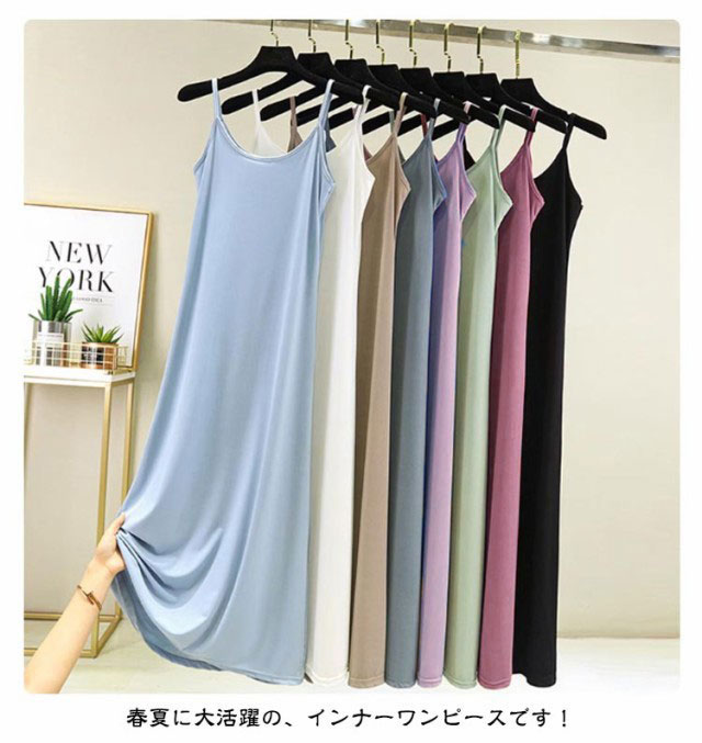 選べる着丈 ペチコート インナーワンピース ロング スリップ 薄手 サラサラ 速乾 蒸れない ノースリーブ シンプル 夏 レディース マキシ丈 透け防止 キャミソールワンピース 無地 ルームウェア ストレッチ 全8色