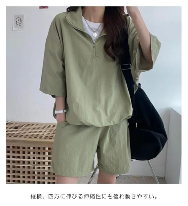 ラッシュガード レディース 上下セット ショートパンツ セットアップ 半袖 フードパーカー 体型カバー パーカー 無地 シンプル おしゃれ UVカット 紫外線対策 日焼け防止 接触冷感 ひんやり 吸水速乾 軽量 動きやすい ストレッチ 韓国 30代 40代 50代 カジュアル 夏 送料無料
