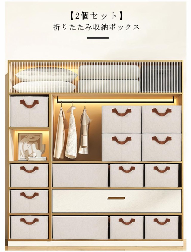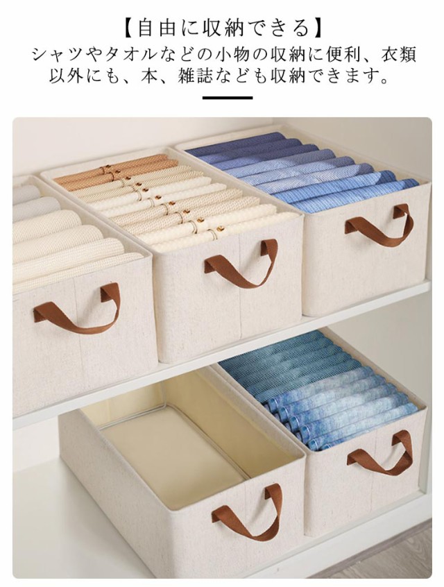 衣類 積み重ね 収納 おしゃれ 折り畳み 衣装ケース 小物収納 【2個セット】収納ボックス シンプル 収納ケース 収納箱 クローゼット 省スペース コンパクト 本 取っ手付 雑誌 ぬいぐるみ 小物 北欧 綿麻 マンガ 衣類収納 26L 幅47cm 高さ20cm