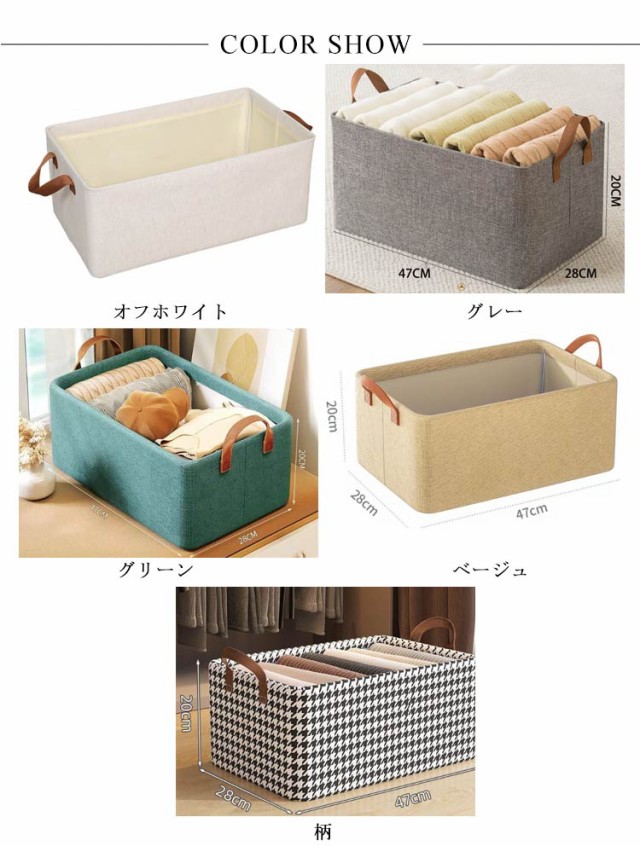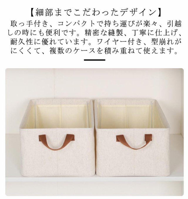 | 【2個セット】折りたたみ収納ボックス 【折り畳み可能】折り畳無ことができ、使わない時はコンパクトに収納。省スペース出来、持ち運びやすいです。 【自由に収納できる】シャツやタオルなどの小物の収納に便利、衣類以外にも、本、雑誌なども収納できます。 【高品質素材】肌に優しい綿麻を使用し、耐摩擦に強くて、通気性に優れています。 【積み重ね可能】中に頑丈な補強ワイヤーを採用し、しっかり安定!複数の収納ボックスを積み重ねて使えて便利です。 【細部までこだわったデザイン】取っ手付き、コンパクトで持ち運びが楽々、引越しの時にも便利です。精密な縫製、丁寧に仕上げ、耐久性に優れています。ワイヤー付き、型崩れがにくくて、複数のケースを積み重ねて使えます。 | |