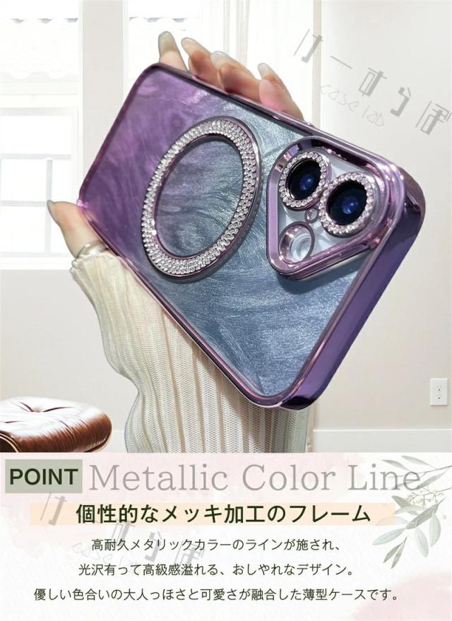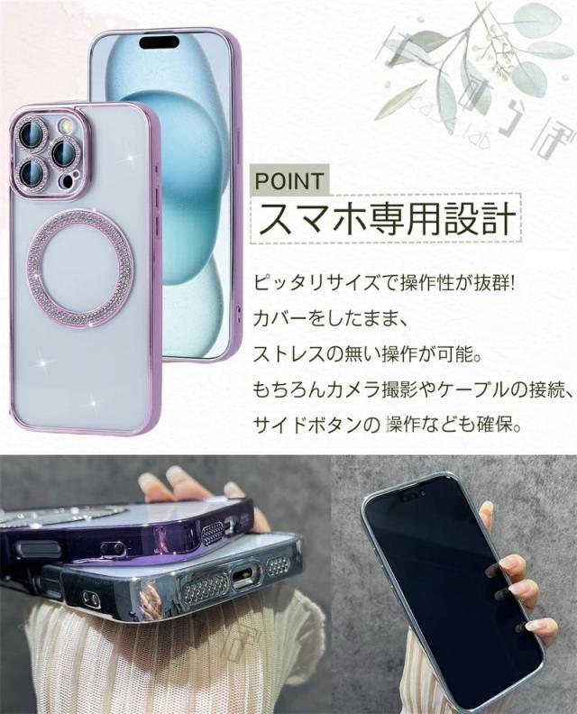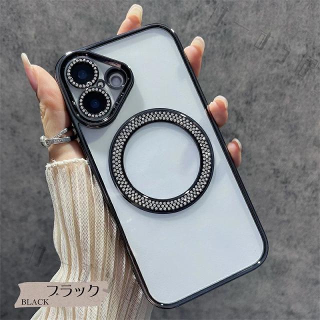 MagSafeケース キラキラ デコ iPhoneケース インナーシート付き iPhone16Pro Max iPhone15 iPhone14 Pro Max PLUS iPhone13 スマホケース カメラ周り デコ ラインストーン付き 韓国 iPhone 14Pro 15 16 13 12 Pro Max ケース おしゃれ 大人女子 大人可愛い マグセーフ搭載