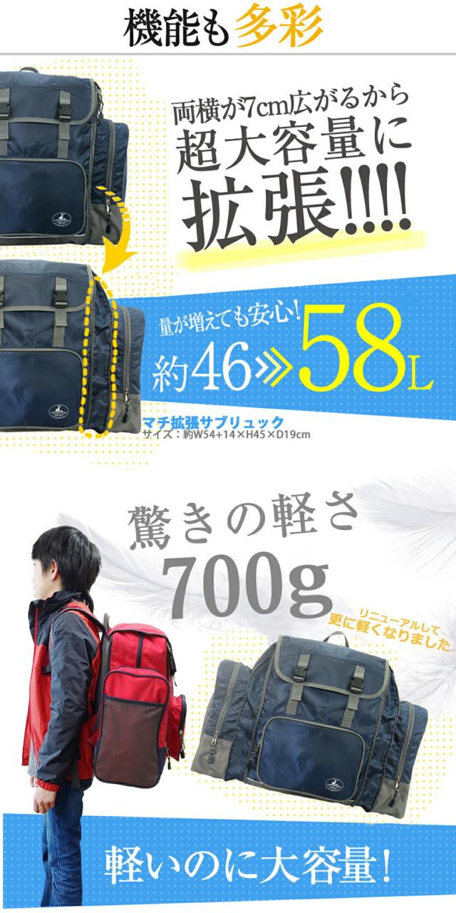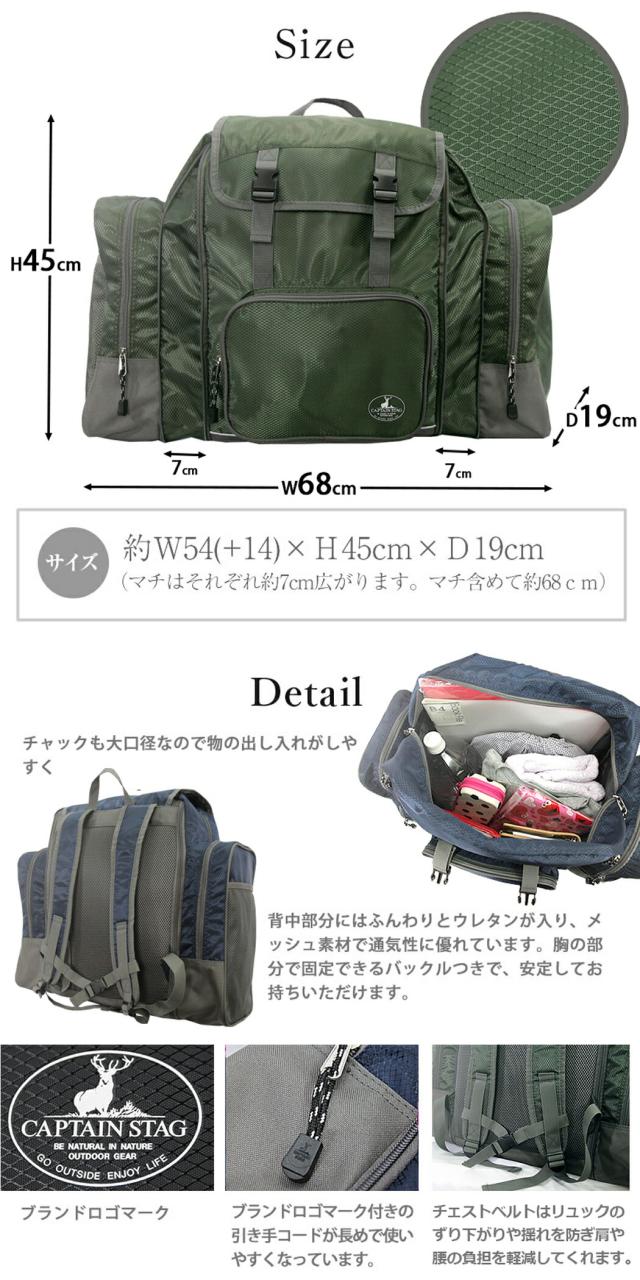 キャプテンスタッグ CAPTAIN STAG リュック サブリュック ボストンバッグ 大型リュック 防災リュック 2WAY 修学旅行 林間学校 自然学校 大容量 広がる 女子 かわいい アウトドア 男女兼用 46L-58L 01314 0121700 GW