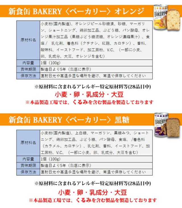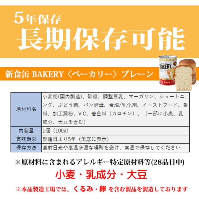 こちらは新食缶ベーカリー6缶セット(1種類×6缶)のページです。 大事の備えとして。 分けあってご家族分として。 賞味期限の近いものの、詰め替え用として。 キャンプ、アウトドアでの使用に。 お友達、ご近所様と分け合い。 企業様、自治体などの備蓄用に。 製造より5年保存可能! ※流通の段階で多少のお時間がかかるため、お手元に届く際には賞味期限が5年を切る場合もございます(賞味期限4年6ヶ月以上を保証) 開けてすぐに食べられる、缶入りとは思えないしっとりやわらかな食感! 保存食の常識を覆すおいしさ! アウトドア、キャンプでもお使いいただけます! ▼新食缶 BAKERY <ベーカリー> プレーン▼ 原材料名: 小麦粉(国内製造)、砂糖、調整豆乳、マーガリン、ショートニング、ぶどう糖、パン酵母、食塩/乳化剤、イーストフード、香料、加工澱粉、V.C、着色料(カロチン)、 一部に小麦、乳成分、大豆を含む) 内容量: 1個(100g) 賞味期限: 製造日より5年(缶底に表示) 保存方法: 直射日光や高温多湿な場所を避け、常温で保存してください。 ※原材料に含まれるアレルギー特定原材料等(28品目中) 小麦・乳製品・大豆 ※本品製造工場では、くるみ・卵をお含む製品を製造しております。 ▼新食缶 BAKERY <ベーカリー> オレンジ▼ 原材料名: 小麦粉(国内製造)、オレンジピール砂糖漬、砂糖、マーガリン、ショートニング、鶏卵加工品、ぶどう糖、パン酵母、オレンジ果汁加工品(果糖ぶどう糖液糖、オレンジ濃縮果汁)、 食塩 / 乳化剤、着色料(クチナシ、紅麹、カロチン)、香料、酸味料、イーストフード、加工澱粉、V.C、(一部に小麦、卵、乳成分、大豆、オレンジを含む) 内容量: 1個(100g) 賞味期限: 製造日より5年(缶底に表示) 保存方法: 直射日光や高温多湿な場所を避け、常温で保存してください。 ※原材料に含まれるアレルギー特定原材料等(28品目中) 小麦・卵・乳製品・大豆 ※本品製造工場では、くるみをお含む製品を製造しております。 ▼新食缶 BAKERY <ベーカリー> 黒糖▼ 原材料名: 小麦粉(国内製造)、上白糖、マーガリン、黒糖みつ、ショートニング、鶏卵加工品、ぶどう糖、パン酵母、食塩、 /着色料(カラメル、カロチン)、乳化剤、香料、イーストフード、 加工澱粉、V.C、(一部に小麦、卵、乳成分、大豆を含む) 内容量: 1個(100g) 賞味期限: 製造日より5年(缶底に表示) 保存方法: 直射日光や高温多湿な場所を避け、常温で保存してください。 ※原材料に含まれるアレルギー特定原材料等(28品目中) 小麦・卵・乳製品・大豆 ※本品製造工場では、くるみをお含む製品を製造しております。 -セット内容- 6缶セット(1種類×6缶) プレーン・オレンジ・黒糖の3種類の中から1種類×6缶 ●新食缶 BAKERY <ベーカリー> プレーン×6缶 または ●新食缶 BAKERY <ベーカリー> オレンジ×6缶 または ●新食缶 BAKERY <ベーカリー> 黒糖 ×6缶 各合計6缶のセットとなります。 -ご注意- ■災害発生後はご注文が非常に殺到いたします。納期にお時間をいただく場合がございます。セット内容は予告なく、同等の品に変更になる場合がございます。 また、発送・お問い合わせのご返答にはお時間を頂戴いたします。ご了承ください。 ■商品サイズ・カラーは、企画サイズとなります。 ■商品画像につきましては、モニターの種類・設定等により、実際の商品とは素材感や色味が異なる見え方をする場合があります。 ■商品によっては、他店と在庫共有しているものがございますので、ご注文を頂戴した時点で、 在庫が確保できない商品につきましては、 ご注文をキャンセルさせていただく場合がございます。 なにとぞ、ご了承の程、よろしくお願いいたします。 |