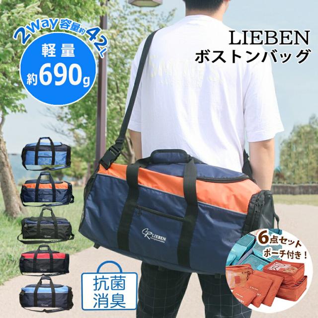 トラベルポーチ付き ボストンバッグ 2WAY 修学旅行 抗菌 消臭 リーベン ツートン 林間学校 自然学校 大容量 旅行 反射テープ 男女兼用 レディース メンズ 男の子 小学生 中学生 高校生 327 cr-327