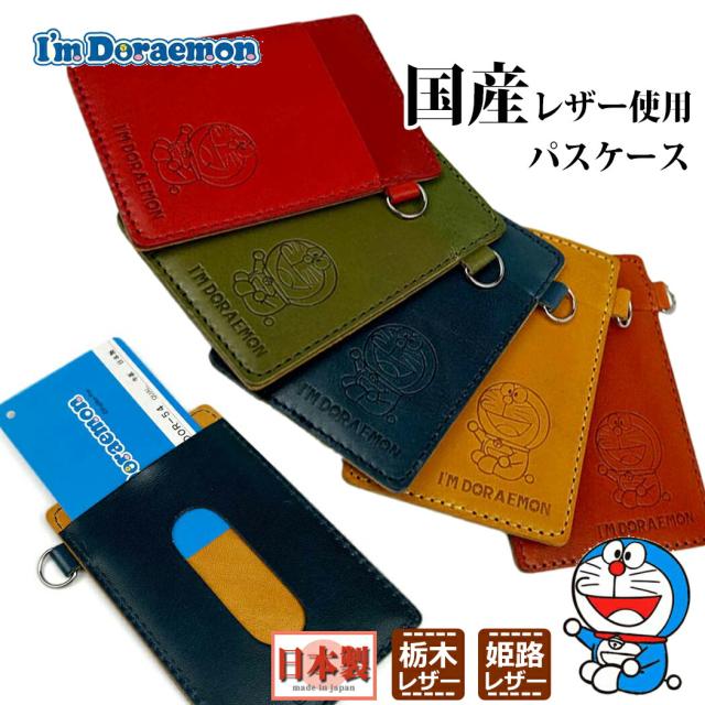ドラえもん パスケース 日本製 高級 栃木レザー 姫路レザー dor-54 カードケース 定期入れ 牛革 皮革 メンズ レディース 通学 通勤 男女兼用 リアルレザー プレゼント 男女兼用 かわいい バレンタイン キッズ メール便送料無料