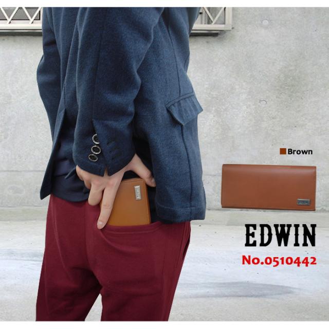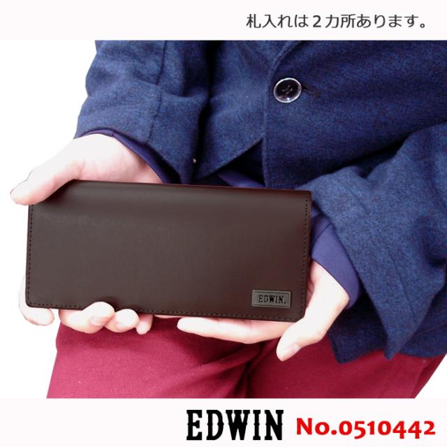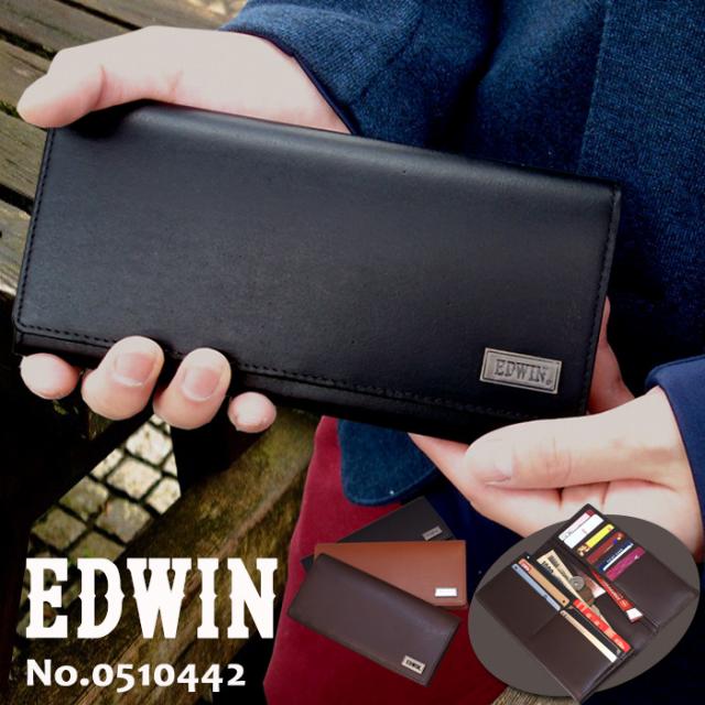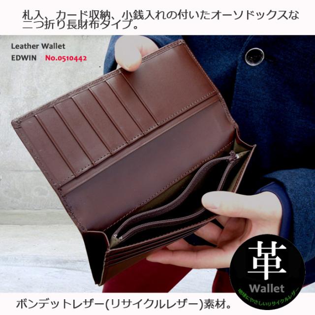 EDWIN エドウィン 2つ折り 長財布 0510742 0510442 ボンデットレザー 革 メンズ ウォレット レザー アンティーク ブラック チョコ ブラウン【メール便送料無料】父の日 プレゼント 長財布 バレンタイン