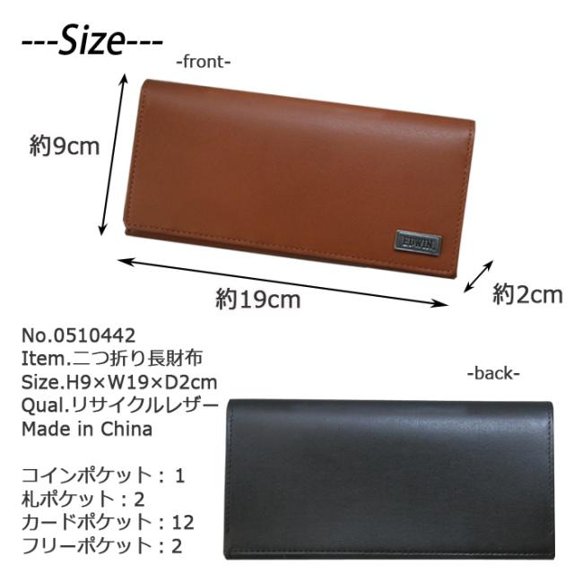 人気ブランド『EDWIN』の革メンズウォレット!! カジュアルな風合いのボンデットレザー(地球にやさしいリサイクルレザー)を使用。 使いやすいシンプルな2つ折り長財布♪ シンプルながら大変おしゃれなウォレットです! 贈り物にも最適! ★メール便送料無料★ メール便発送のみ送料無料です。 あす楽、代引き、日付指定、宅配便をご希望の場合は別途、通常の送料がかかります。 その場合、ご注文後に手修正にて送料を計上し、メールにてお知らせ致します。 ■サイズ:W19×H9×D2cm ■素材:表/ボンデットレザー(地球にやさしいリサイクルレザー) ■カラー:ブラック、チョコ、ブラウン ■原産国:中国 仕 様: 小銭入れ 1カ所 札入れ 2カ所 カード入れ 12カ所 フリーポケット 2カ所 |