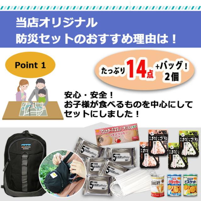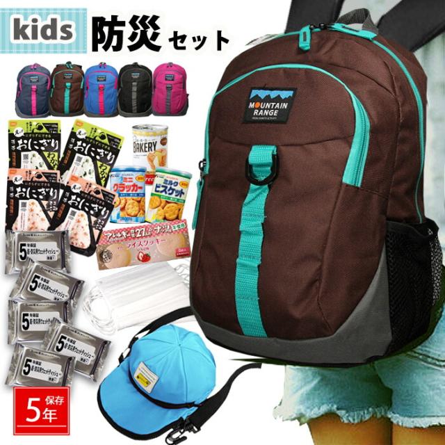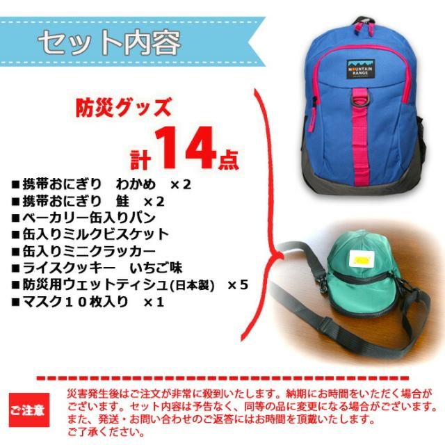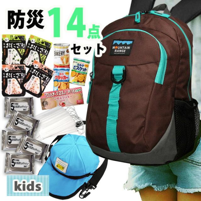 防災セット 子供用 14点セット kids キャップ ショルダー 子ども用 防災グッズ 非常用持出袋 防災リュック おにぎり 缶入りパン クッキー リュック 1人用 災害対策 地震 避難グッズ 避難 マスク ウェットティッシュ mrm01【5-7日】