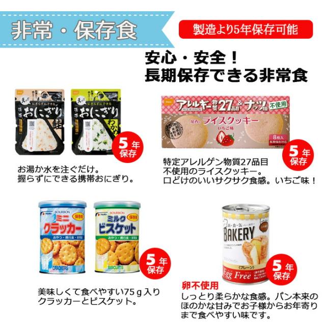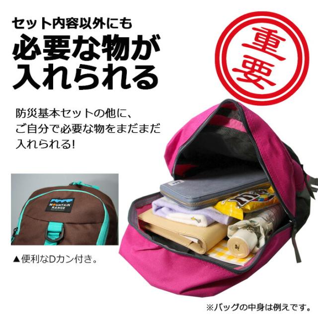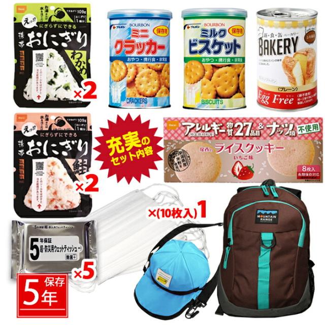 幼稚園、小学生低学年のお子様などに、ぴったりの小ぶりなリュクの防災セット! 貴重品などを入れるのにぴったりのキャップ帽ショルダー付き! リュックサックと、防災グッズを単品で一つずつ揃えられるよりもお得なセット価格となっております! お子様や小柄な女性など、小ぶりサイズをお探しの方にぴったりのサイズ! 防災セットの他にも、タオル、着替え、常備薬なども入れられます! 製造より5年保存可能! ※流通の段階で多少のお時間がかかるため、お手元に届く際には賞味期限が5年を切る場合もございます(賞味期限4年6ヶ月以上を保証) 防災グッズ14点+リュック+キャップ帽ショルダーのセットです! リュックのカラーが選べる!!キャップ帽ショルダーのカラーは選べません。 -防災セット内容- ■防災用ウェットティシュ(日本製) 20枚入り×5個 ■マスク 10枚入り×1個 ■携帯おにぎり わかめ×2 ■携帯おにぎり 鮭×2 ■ベーカリー卵不使用 缶入りパン プレーン味 ■ライスクッキー いちご味 ■缶入りミルクビスケット ■缶入りミニクラッカー 計14点+リュック+キャップ帽ショルダーのセットとなります。 ■下記地域へのお届けは、配送の都合上、一部送料のご負担をお願い致します。 ┗離島、沖縄県…2,500円 -ご注意- ■災害発生後はご注文が非常に殺到いたします。納期にお時間を頂く場合がございます。また、発送・お問い合せのご返答にはお時間をちょうだいします。ご了承ください。 ■商品サイズ・カラーは、企画サイズとなります。 ■商品画像につきましては、モニターの種類・設定等により、実際の商品とは素材感や色味が異なる見え方をする場合があります。 ■細かなキズや、製造上避けられないシミ・シワなどがある場合があります。 ■商品仕様は、予告無く仕様変更される場合がございます。セット内容は予告なく、同等の品に変更になる場合がございます。予めご了承下さい。 ■商品によっては、他店と在庫共有しているものがございますので、ご注文を頂戴した時点で、 在庫が確保できない商品につきましては、 ご注文をキャンセルさせていただく場合がございます。 なにとぞ、ご了承の程、よろしくお願いいたします。 |