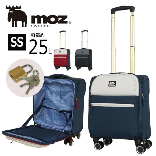 キャリーケース スーツケース moz モズ SSサイズ 軽量 25L 4輪 コインロッカーサイズ 機内持込 小さい 旅行 修学旅行 旅行カバン 南京錠 丈夫 北欧 可愛い 1〜2泊 ファブリック 女性 母の日 mz-0239-39