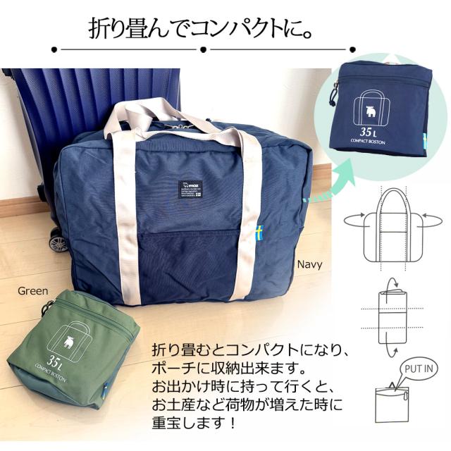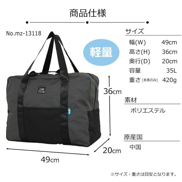 ボストンバッグ ショルダーバッグ moz モズ キャリーオン 35L ポーチ付き 2way 折り畳み パッカブル 修学旅行 林間学校 自然学校 大容量 軽量 旅行 男女兼用 レディース メンズ きれいめ 小学生 中学生 高校生 mz-13118 母の日