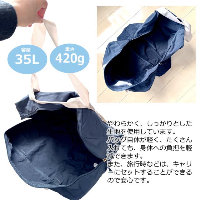 | サイズ | 本体サイズ:高さ約36cm×横幅:約49cm×マチ約20cm 容量 約35L 重量 約420g ポーチサイズ:高さ約17.5cm×横幅:約24cm×マチ約8cm 重量 約60g |