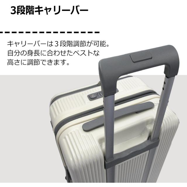 1〜3泊程度の旅行に対応のシンプルなデザインのスーツケース。100席以上の機内持ち込み対応サイズです。