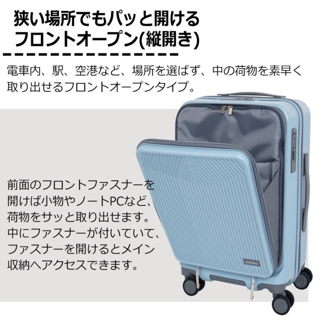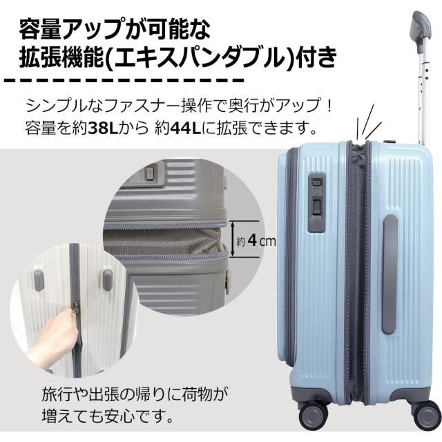 ■ポイント/・100席以上の機内持ち込み対応。・立てたまま開くことのできるフロントオープンポケット・PCなどを入れるウレタンポケット付き・ボディには耐久性あるポリカーボネート+ABS樹脂を使用。キャスターにはスムーズで快適な走行を提供するサイレントダブルキャスターを採用。・旅先で荷物が増えても安心のエキスパンダブル機能を搭載。・TSAロック標準装備。・ポケットやクロスストラップ付きでパッキングのしやすさを考慮した内装。・キャリーバーはシーンや身長に合わせて段階調整が可能。