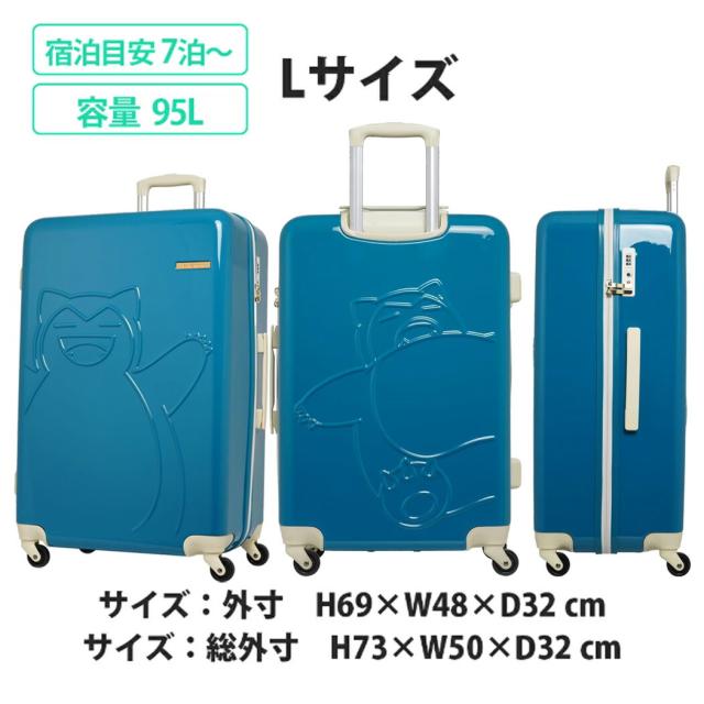 キャリーケース スーツケース ポケットモンスター カビゴン Lサイズ 機内持込 軽量 95L 型押し 4輪 旅行 修学旅行 TSAロック モンスターボール ネームタグ ABS 小旅行 pk-0886-69 ポケモン キャラクター