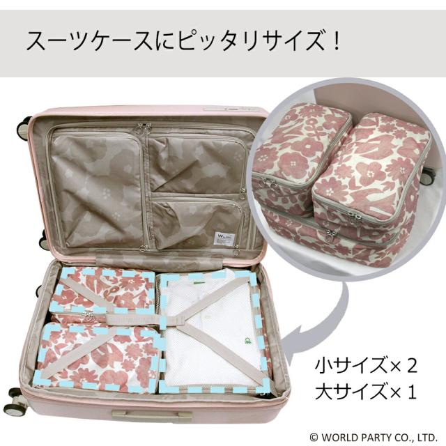 スーツケースのカラーに合わせて、かわいい柄の3点ポーチが付いています!