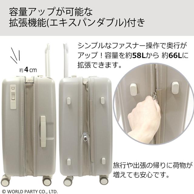 キャリーケース スーツケース WPC Mサイズ ポーチ付き マチ拡張 軽量 エキスパンダブル 58L 66L 4輪 旅行 修学旅行 TSAロック PC サイレント 4-6泊 旅行 海外旅行 69001 母の日 かわいい W by wpc