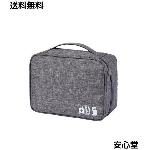ガジェットポーチ ケーブルケース パソコン 携帯 アクセサリー収納 旅行 出張 外出 周辺部品の整理に便利。 (グレー)