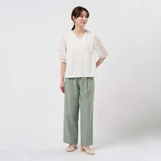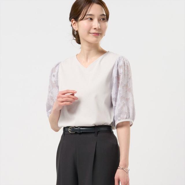 オパール袖のシア感がトレンドさを演出してくれるプルオーバーブラウス。