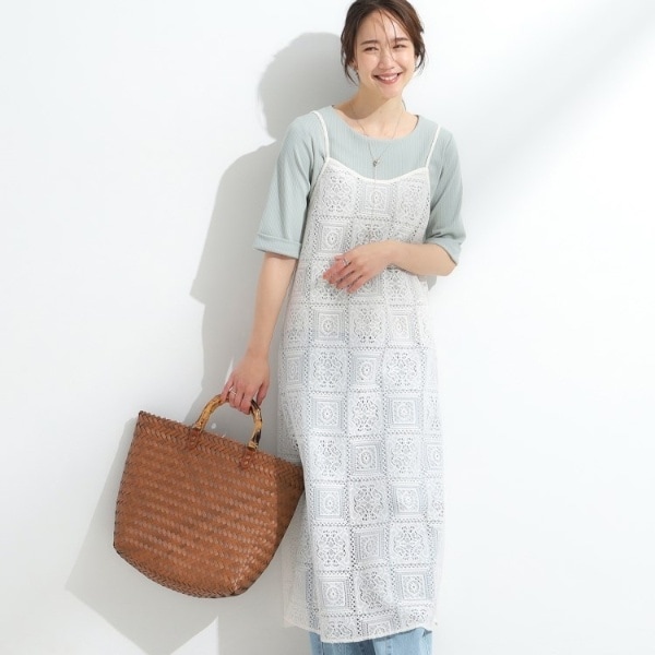 レイヤードスタイルにおすすめのレースキャミワンピース。