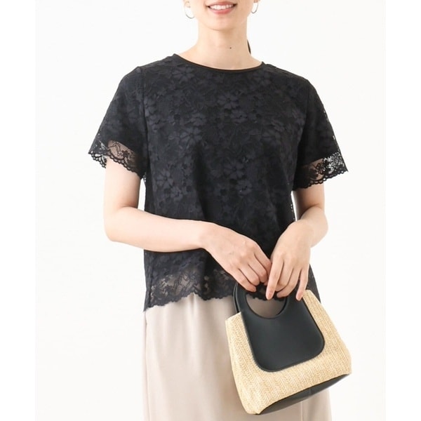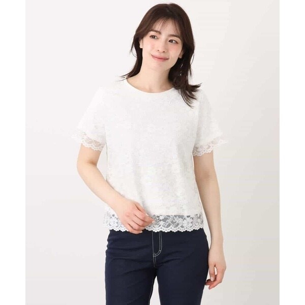 フェミニンな印象のレースTシャツ。裾と袖口にはスカラップ耳端を贅沢に使用しました。