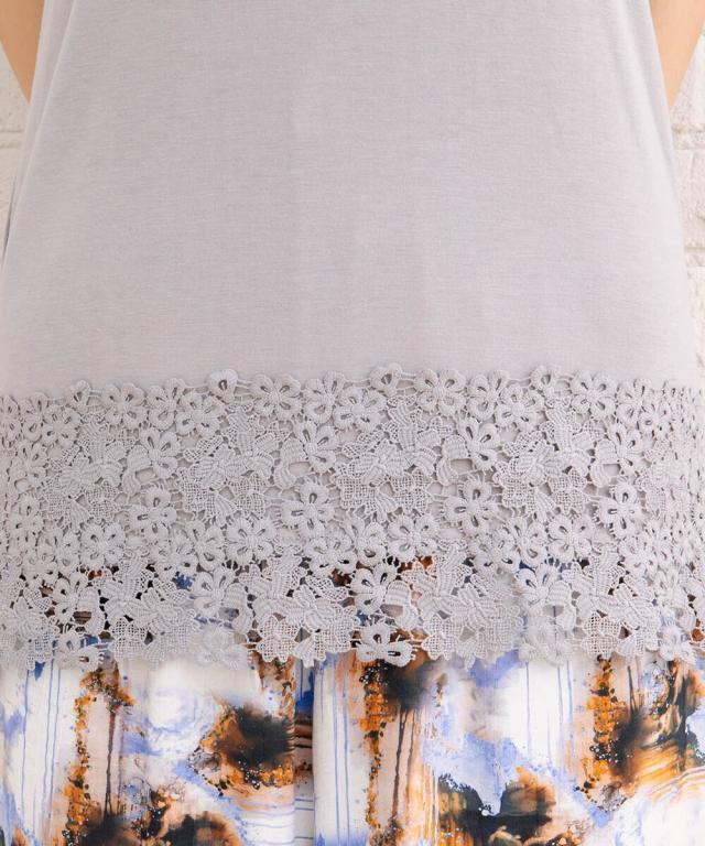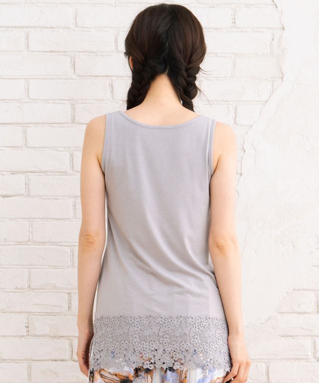 裾にあしらわれた繊細なレースが目を引く、大人フェミニンなタンクトップ。