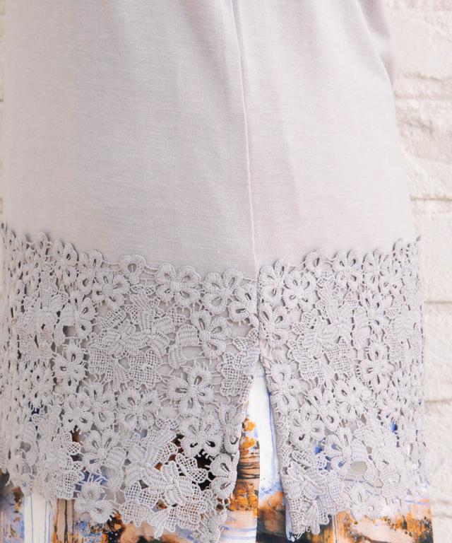 無地のシンプルな身頃に映えるレースディテールが、着こなしに華やかさをプラスします。