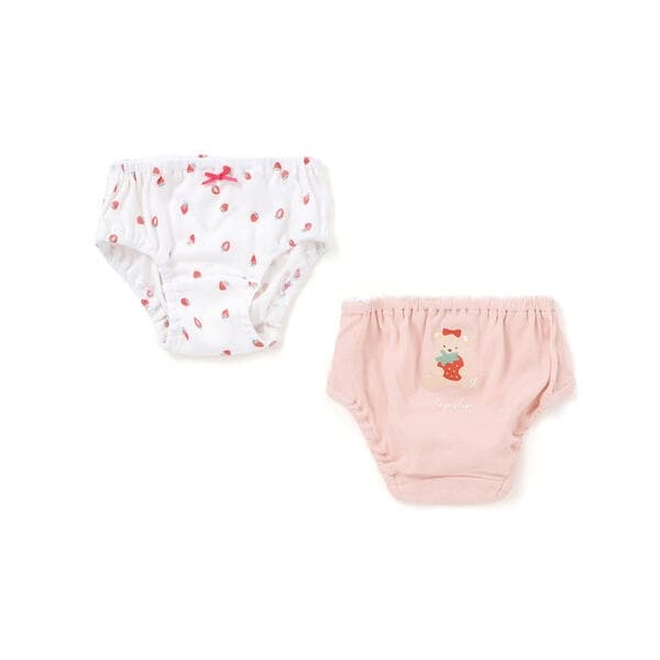 【くまといちご】イチゴの総柄、おしりには大きなイチゴを持ったクマさんがセット。赤いリボンをしているのがポイント