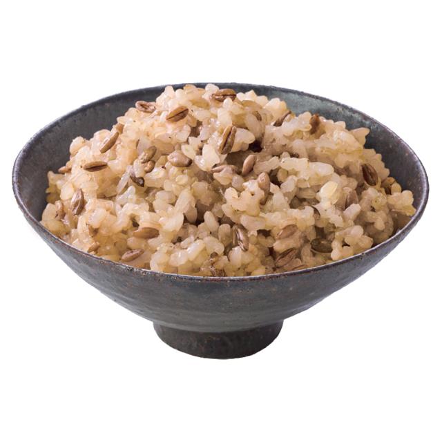 新潟県産こがねもち玄米にスーパー大麦バーリーマックスをブレンドしたもちもち食感が特徴的な市場にない包装米飯。女性30〜50代の1日に必要な食物繊維不足量を1食で摂取できる。