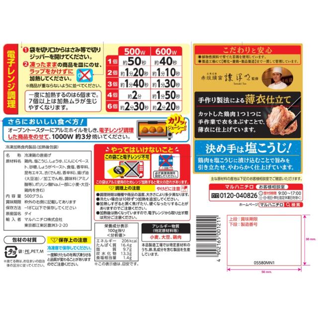 【極旨!ももから揚げ 】若鶏のもも肉を塩こうじでジューシーに仕立てた500gの大容量のから揚げです。赤坂璃宮の譚オーナーシェフ監修のもと、上品でありながらも後引く旨みが特長です。