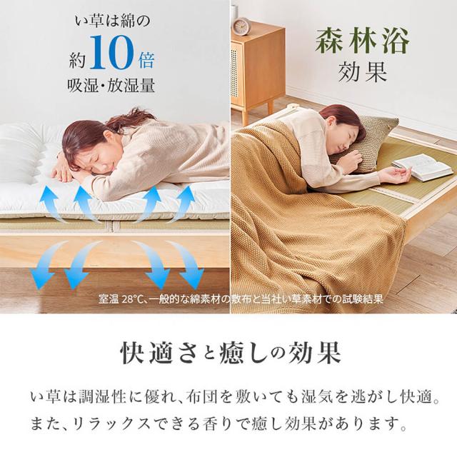 天然い草の爽やかな香りと調湿効果で快適な眠りをサポート。