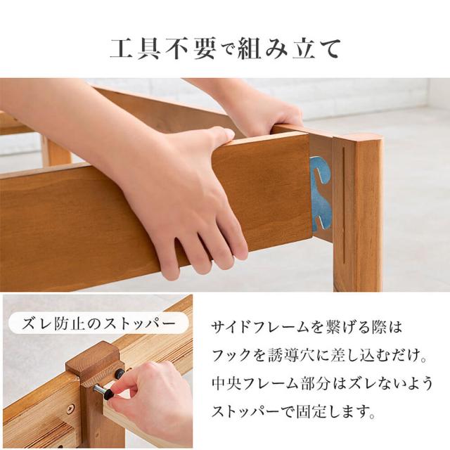 シンプルな設計で、工具を使わずに3分で組み立て可能。重たいベッドを運ぶ必要がなく、女性ひとりでも簡単に設置できます。