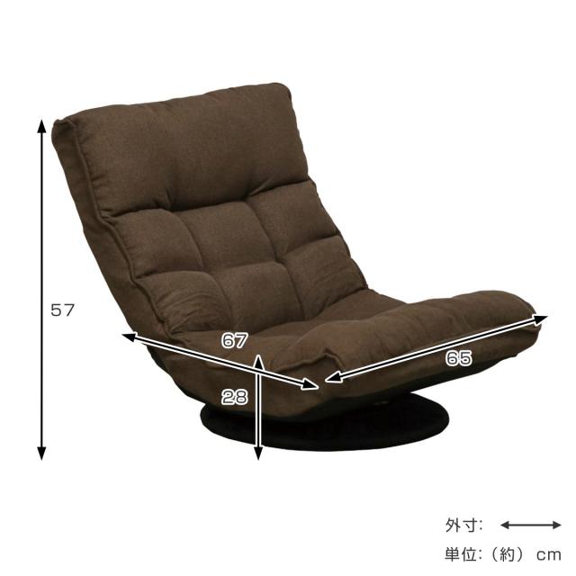 しっかりと体を包み込んでくれるワイドサイズの座椅子です。回転式なので、座ったまま座椅子の向きを変えることができるため、近くの物を取る時や立ち座りの際に便利です。