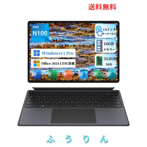 14インチ大画面 2in1タブレット PC office搭載 Celeron N100(4コア)3.4Ghzまで メモリー 16GB 高速SSD 512GB Windowsタブレット 1920×