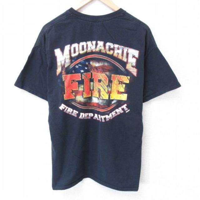 古着 半袖 ビンテージ Tシャツ メンズ 00年代 00s 消防署 クルーネック 黒 ブラック XLサイズ 中古 中古 古着