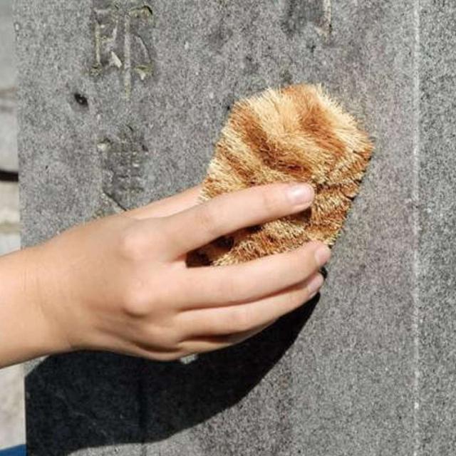 墓石・墓石まわりの洗い上げにちょうど良いサイズです。持ちやすい形状で手にフィットし、軽い力で効率よく磨けます。墓石以外にもブロックやタイルなど、平面のお掃除に最適です。
