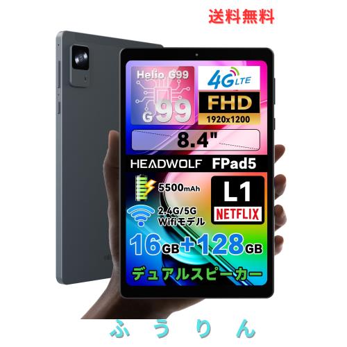 タブレット8インチ Headwolf FPad5 Android 14 タブレット、Widevine L1対応、In-Cell 1920x1200 FHDスクリーン、16GB(8+8拡張) RAM、128
