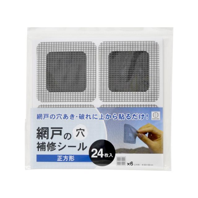 補修テープ 網戸の穴 補修シール 正方形 24枚入り ( 網戸 補修 シール ネット テープ 破れ補修 修理 修繕 虫対策 粘着テープ 貼るだけ 横5×縦5cm あみ戸 パッチ 補修用 補修材 破れ 穴 隠す ふさぐ 直す 埋める 簡単 )