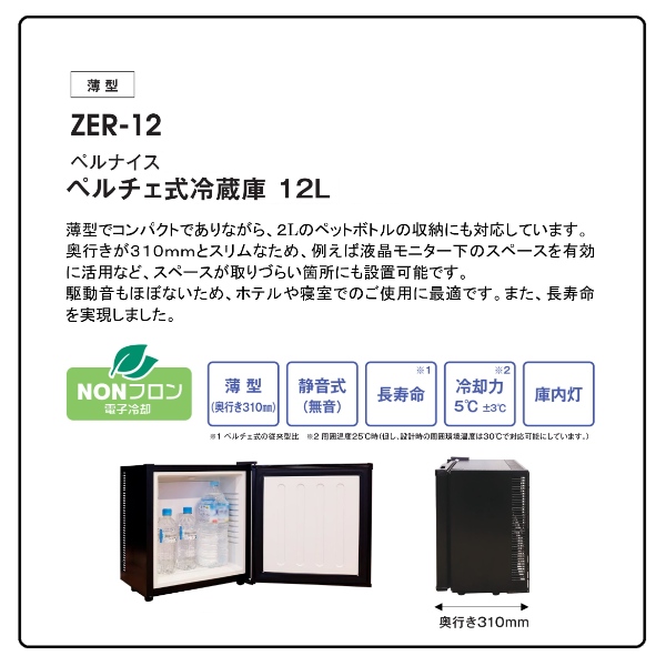 [予約]冷蔵庫 12L 業務用 小型冷蔵庫 右開き 超小型 ペルチェ式 Z-MAX ジーマックス ペルナイス ブラック ZER-12A-BL