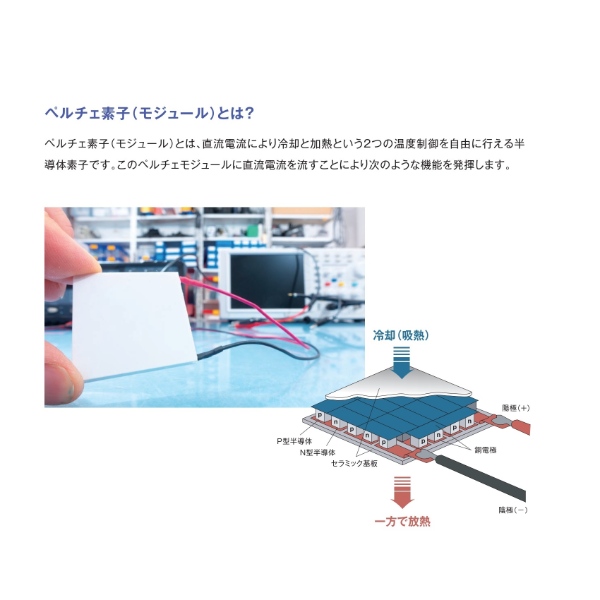 冷却媒体の専門メーカーである自社製高性能半導体ペルチェ素子を使用した冷蔵庫です。